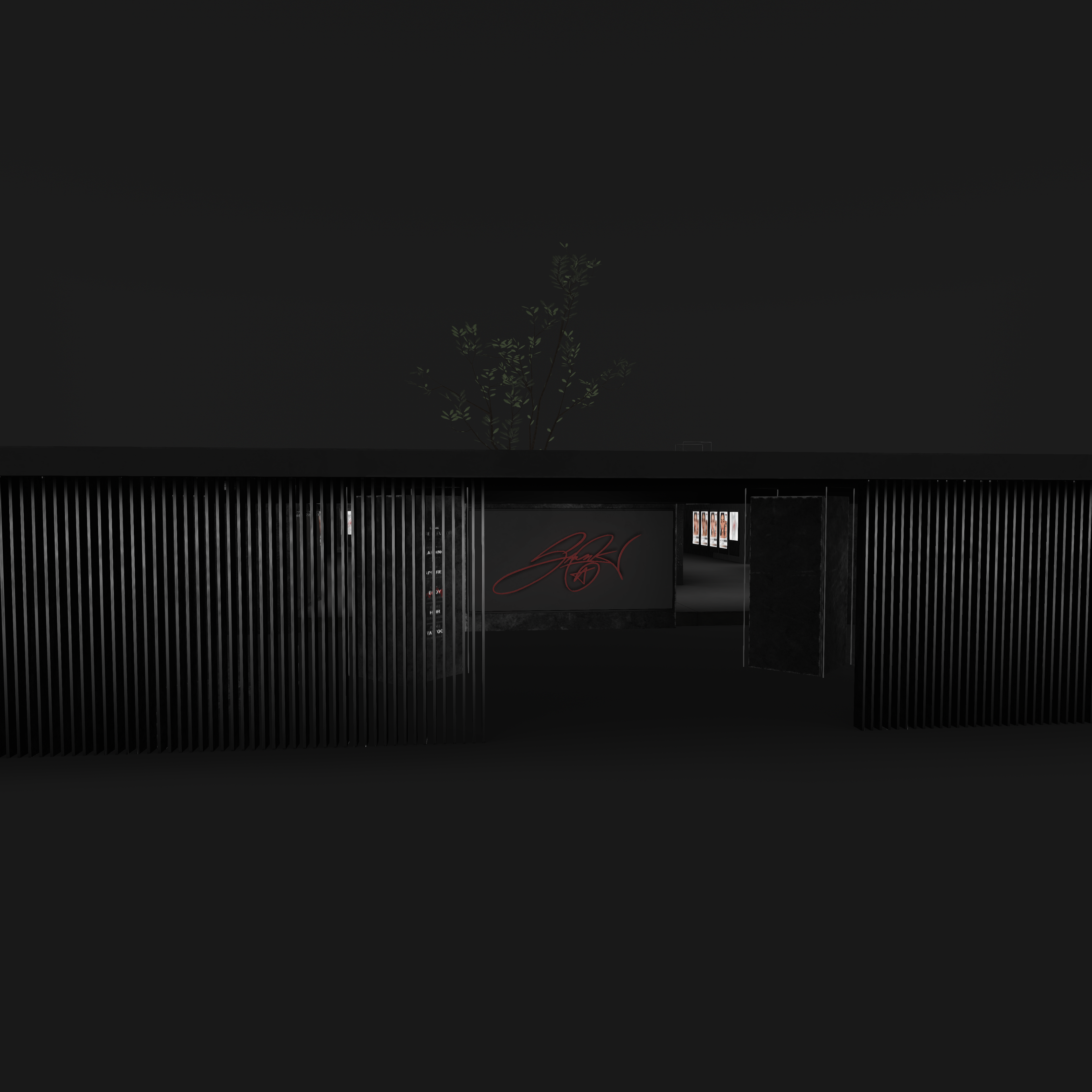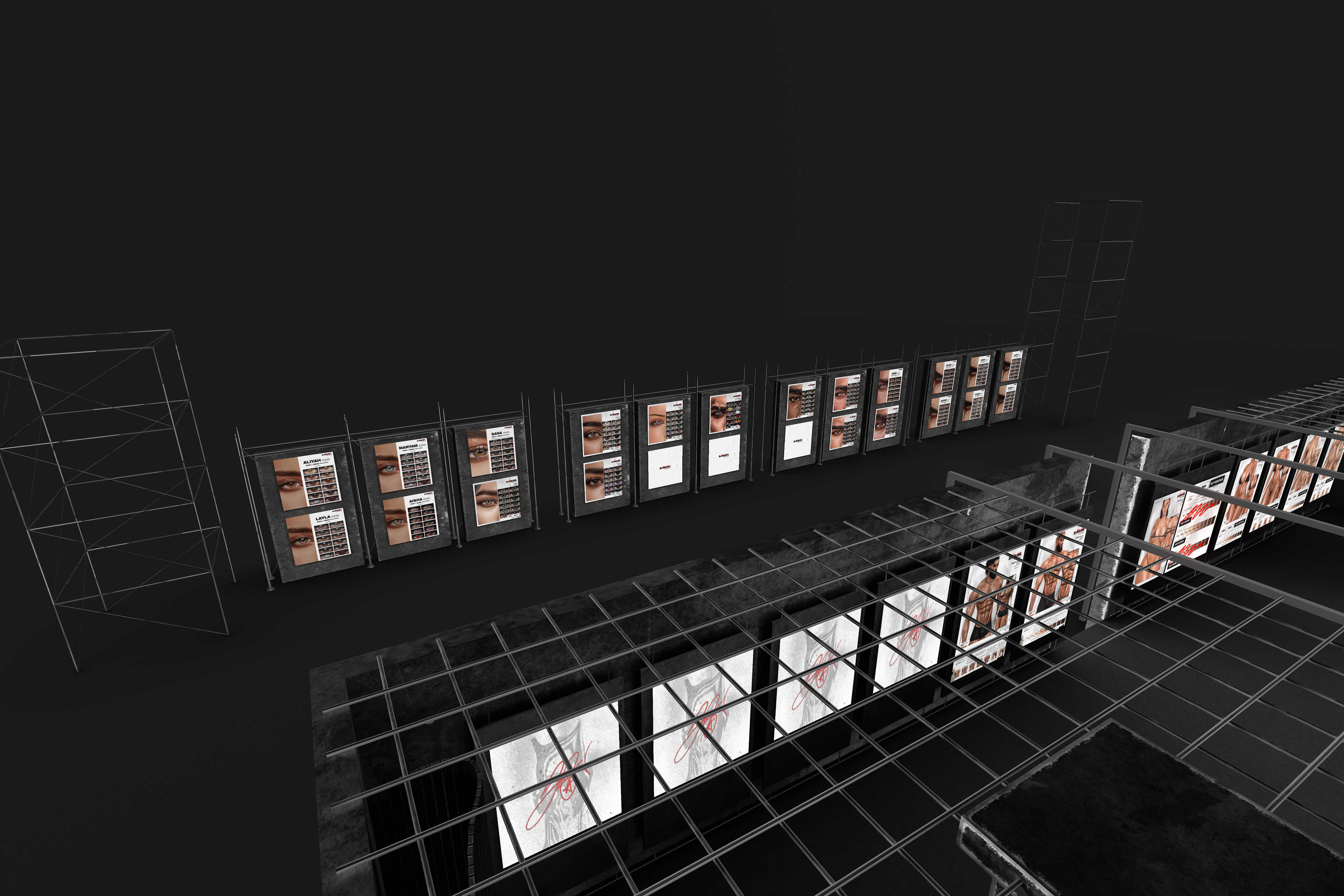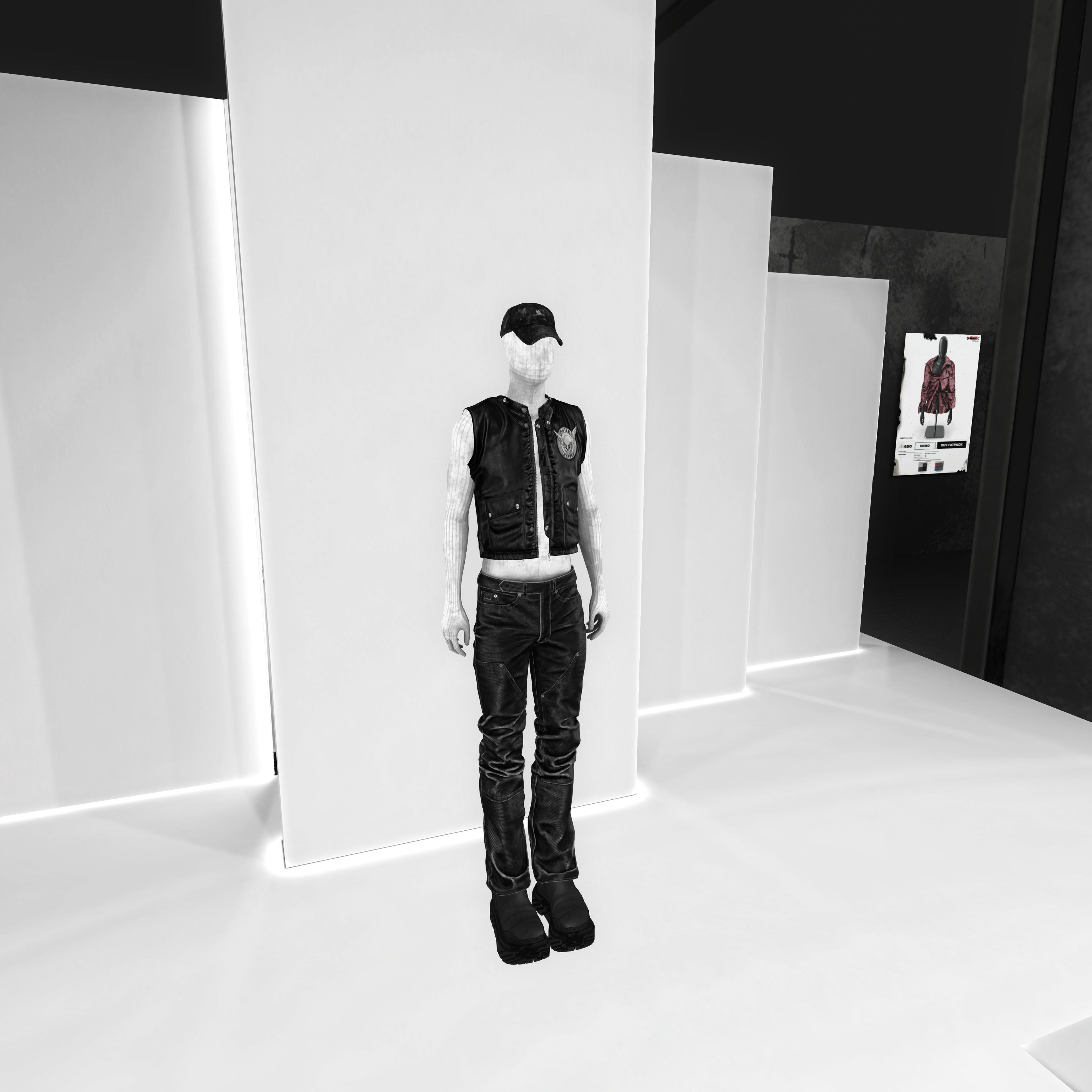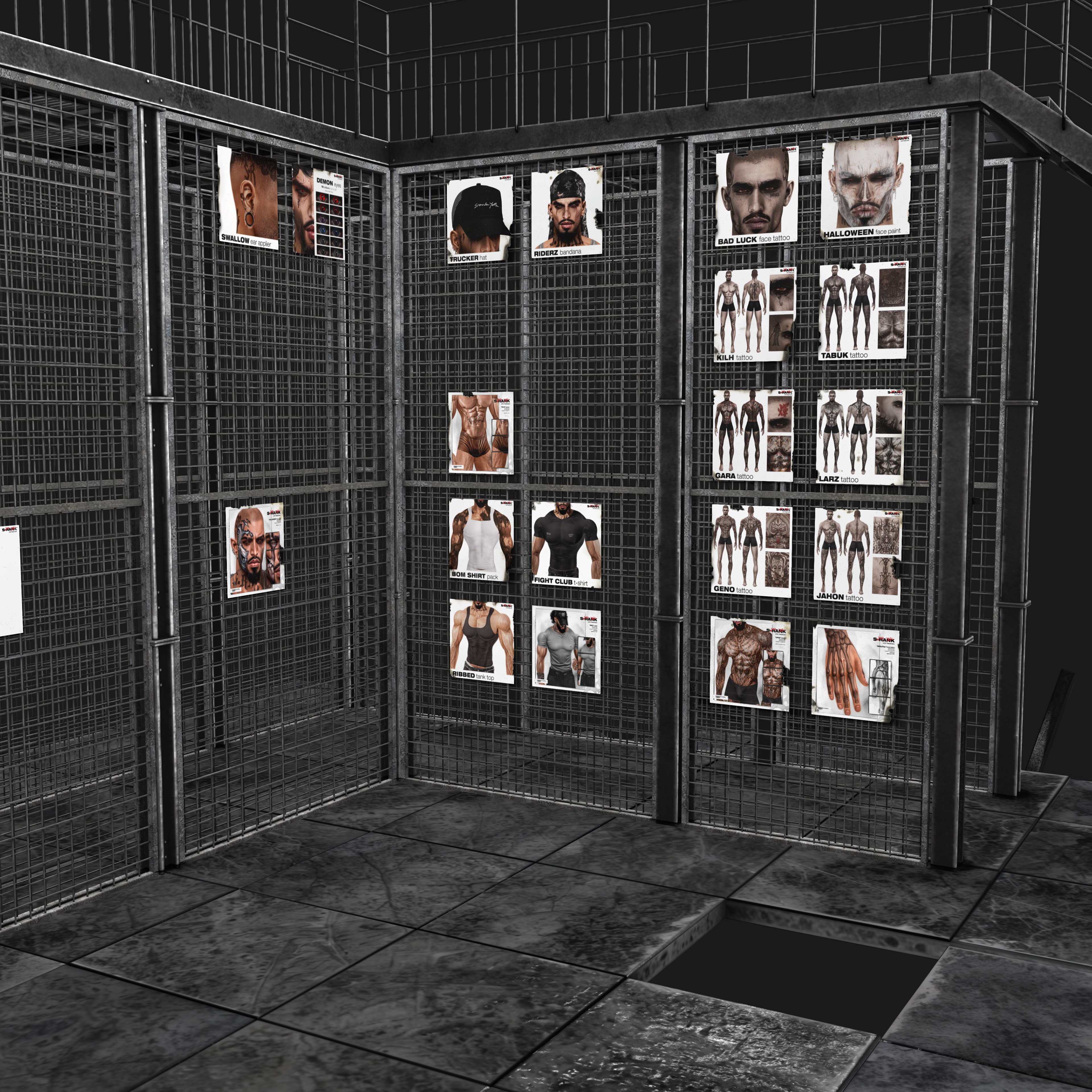 The Body section of the S-RANK flagship continues the brand’s brutalist and industrial aesthetic while shifting focus toward human form and physical identity. This floor is dedicated to S-RANK’s body-related products, including skins, shapes, and enhancements, making it one of the most visually dense and impactful spaces in the complex.