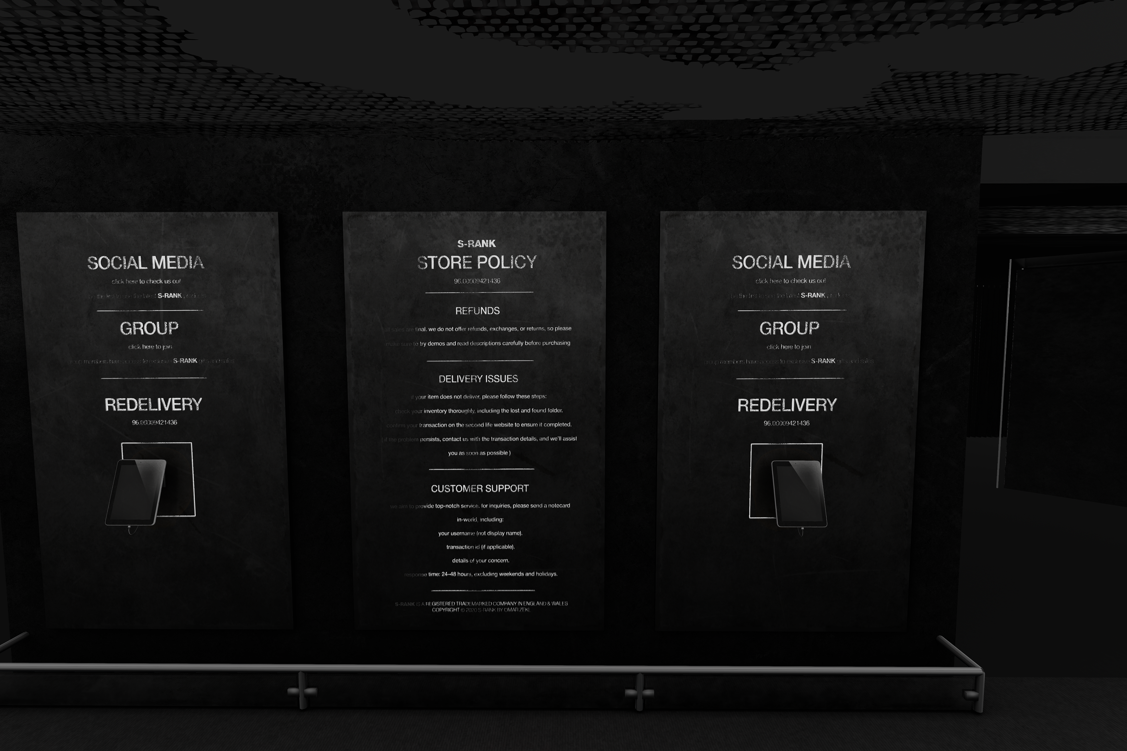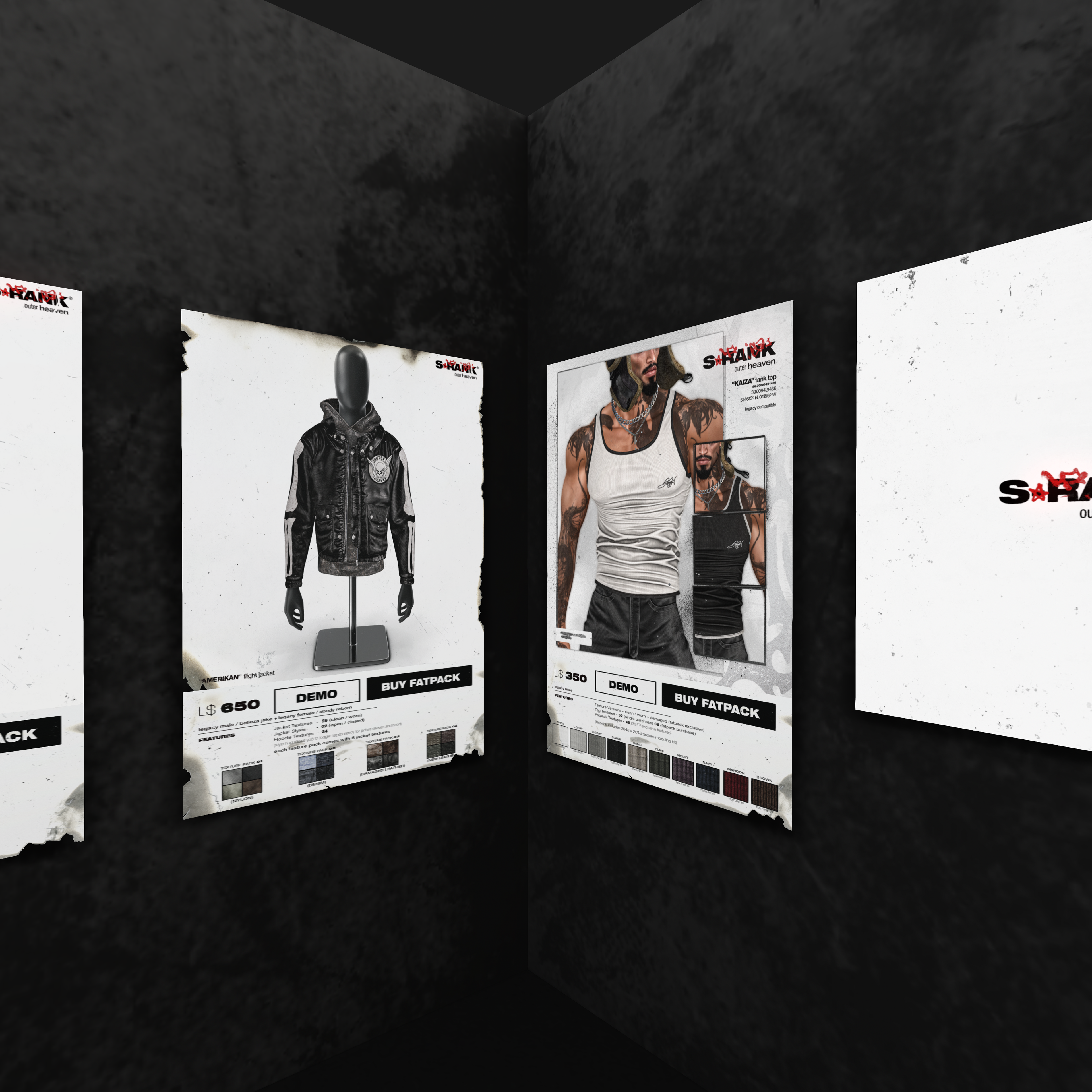 The S-RANK Flagship Store is a fully realized 3D environment that translates my brand’s visual identity and design philosophy into an interactive, spatial experience within the metaverse. Acting as both a retail hub and an immersive brand space, it allows visitors to explore, interact, and purchase products while being fully surrounded by the S-RANK design language — a blend of grunge, industrial, and brutalist influences.